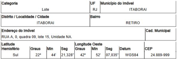 . RUA A NA, QD09, LT15, RETIRO - CEP: 24889-999, ITABORAI - RIO DE JANEIRO