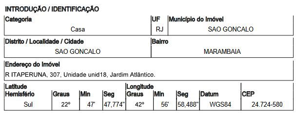 Localização: Casa em Endereço: RUA ITAPERUNA | Bairro: MARAMBAIA | Número: N. 307 UNID 08 SAO GONCALO - RJ