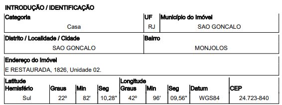 Localização: Casa em Endereço: ESTRADA RESTAURADA | Bairro: MONJOLOS | Número: N. 1826 CS 02 SAO GONCALO - RJ