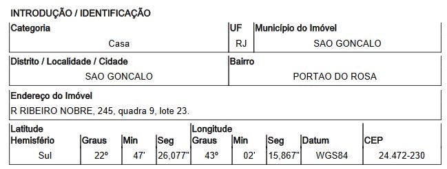 Localização: Casa em Endereço: RUA RIBEIRO NOBRE | Bairro: PORTAO DO ROSA | Número: N. 245 LT 23 SAO GONCALO - RJ