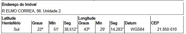 Localização: Casa em Endereço: R ELMO CORREA | Bairro: BANGU | Número: N. 98 CS 02 RIO DE JANEIRO - RJ