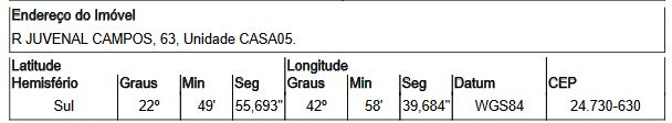 Localização: Casa em Endereço: RUA JUVENAL CAMPOS | Bairro: AMENDOEIRA | Número: N. 63 CS 05 SAO GONCALO - RJ