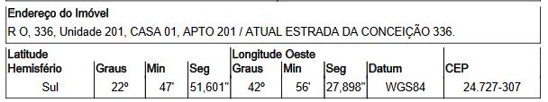 Localização: Apartamento em Endereço: ESTRADA DA CONCEIÇAO (ANTIGA RUA O) | Bairro: MARAMBAIA | Número: N. 336 APTO. 201 CS 01 SAO GONCALO - RJ